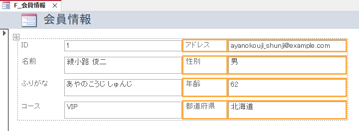 参考オートフォームで作成したフォームは、ここでは[F_会員情報]という名前で保存し、タイトルは[会員情報]としています。